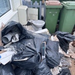 Tiles, bathtub & rubbish bags Mixed household/bathroom removal waste. Mainly wood, tiles, bathtub and toilet. Everything is loose and easy to access at front of house. N15 - removed for £275